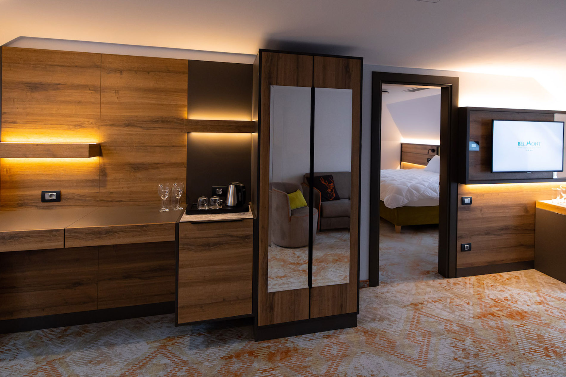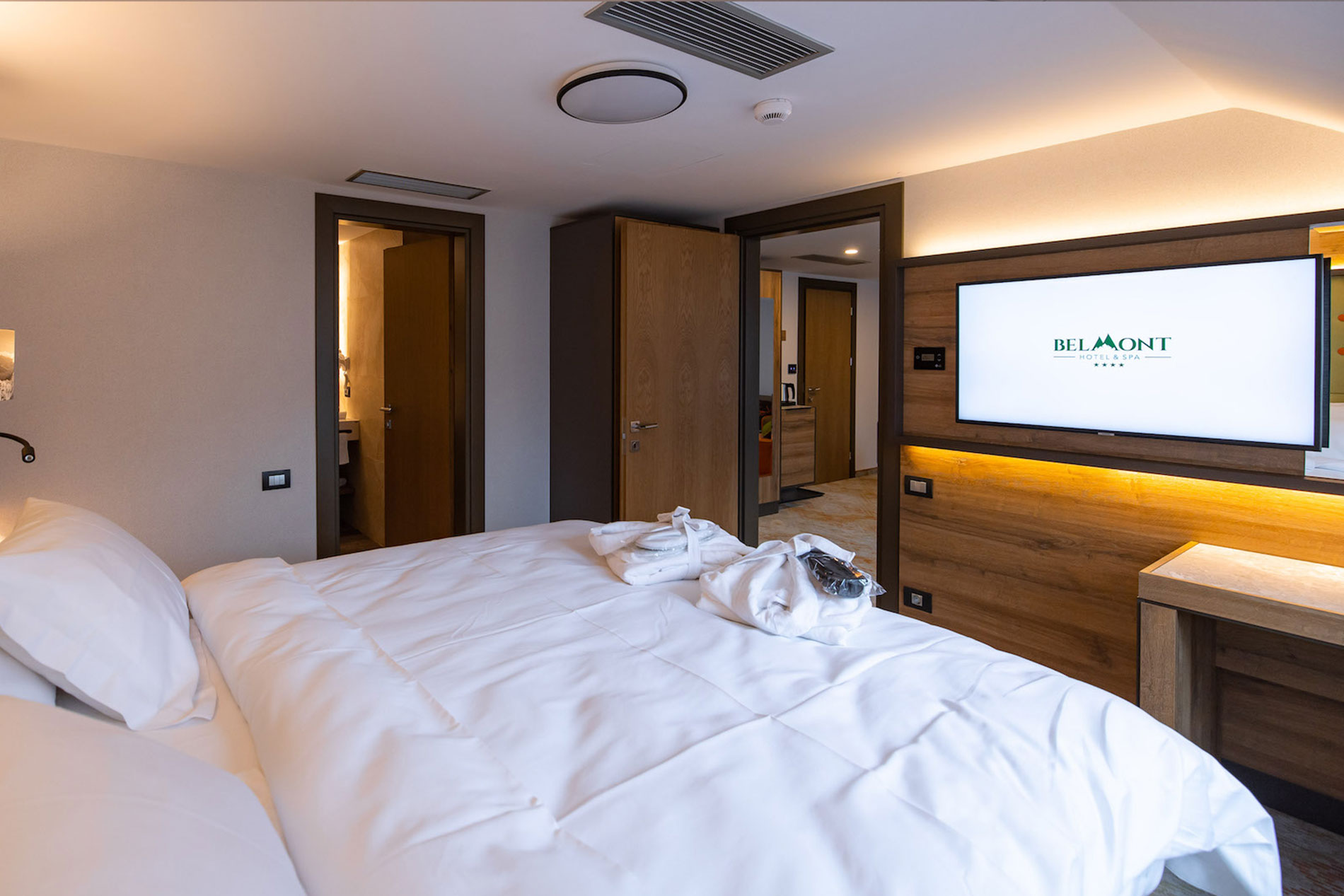 Mare și spaţioasa, aceasta camera este compusa dintr-o cameră cu pat matrimonial și o baie. Hotel Belmont dispune de toate facilitățile necesare pentru a asigura relaxarea mult dorită într-un ambient plăcut și prietenos. Hotel Belmont dispune de 4 junior suite, fiecare avand o suprafata generoasa de 30 mp.